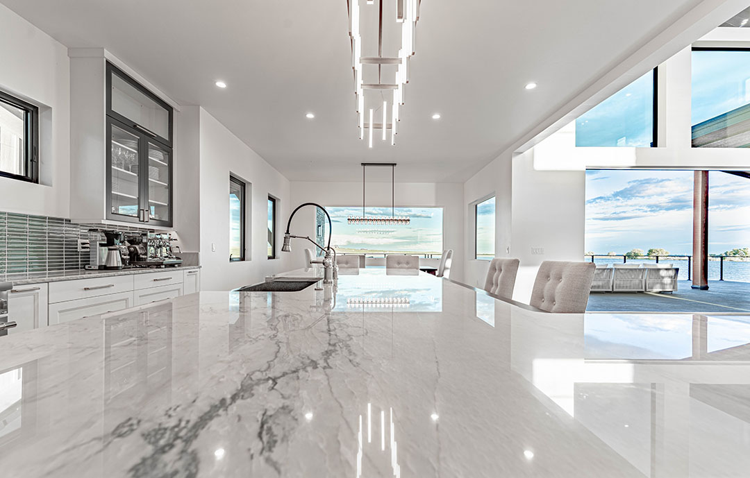 A client of Quinn Custom Homes decided to downsize after his kids left for college. He was approaching retirement and wanted a home that suited his needs as a golfer, swimmer and dinner party host. He also hoped for waterfront views.