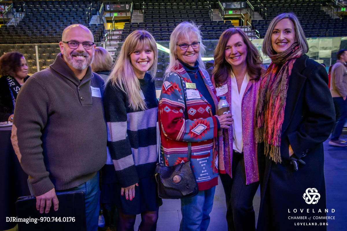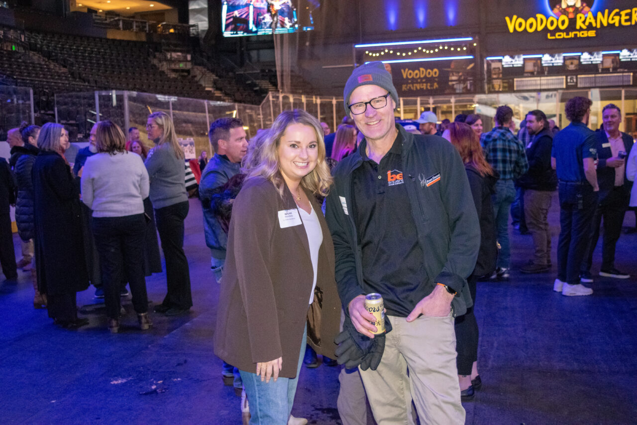 Hundreds of Northern Colorado chamber members gathered for a night of networking at Blue Arena. The event was presented by the Berthoud, Carbon Valley, Estes Park, Evans, Fort Collins, Greeley, Longmont, Loveland, Wellington and Windsor area chambers of commerce. Attendees had the opportunity to explore the recently remodeled Blue Arena, establish connections with regional peers, participate in giveaways and enjoy locally catered food. Drinks were served from a bar in the middle of the Eagles ice rink, and guests tried their luck hitting the puck toward the hockey goal.