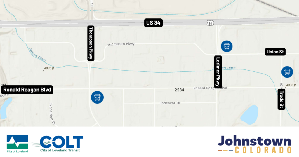 While planning the upcoming regional Greeley to Loveland route, no safe locations were found for stops along U.S. 34. Because of this, COLT determined that offering local transit to connect residents between Johnstown and the Centerra Loveland Mobility Hub (HUB) would be a safer and more effective option. This new service will improve regional connectivity and give residents in both communities better access to jobs, schools, medical facilities, shopping and entertainment, helping reduce traffic congestion and providing a safer, more reliable transit choice.