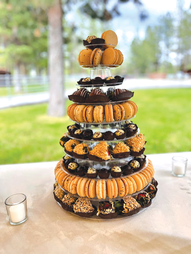 High Desert Chocolates creates stunning wedding experiences with elegant, 10-tier dessert towers, custom-printed macarons and cookies, exquisite chocolate centerpieces and personalized party favors. Gluten-free options are available.