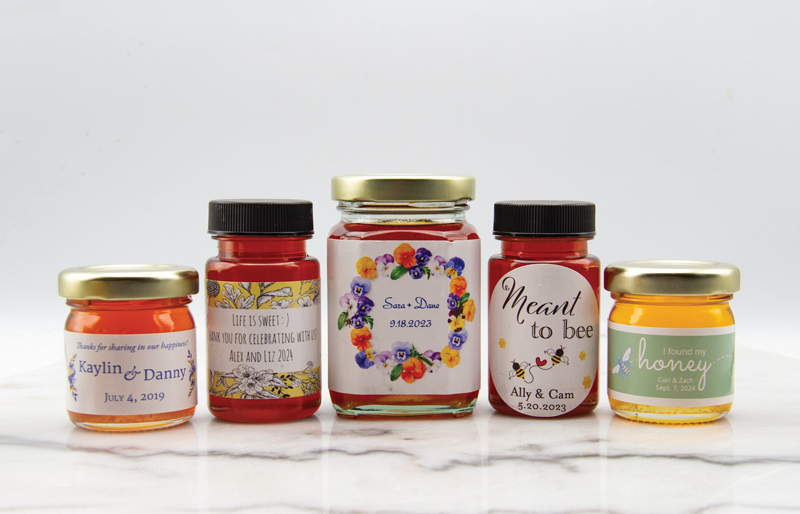 Let Bee Squared make your wedding exponentially better with custom-labeled jars for wedding party gifts and guest favors. Send your loved ones home with a tasteful memory of Colorado—Bee Squared honey.