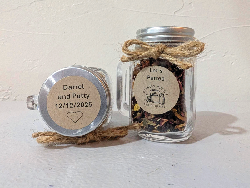 Searching for a unique wedding favor your guests or bridal party will truly remember? With Country Kettle Tea Company, you customize the label and pick from over 70 different loose-leaf blends customers already love.