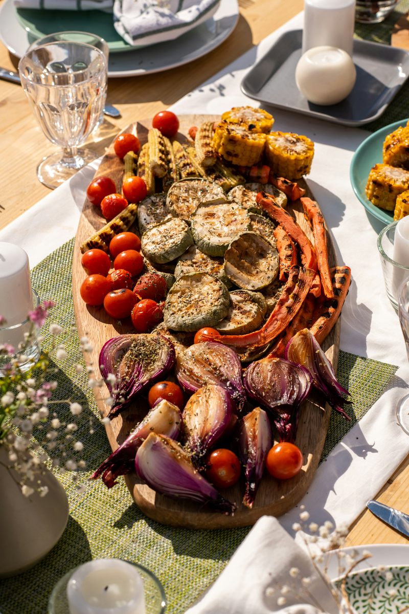 Plant-based dishes are also at the forefront of many couples’ wedding menus rather than being served exclusively as sides, she says. Her roasted veggie boards change with the seasons, and she offers a plant-based cheese board in addition to her charcuterie and caprese boards.
