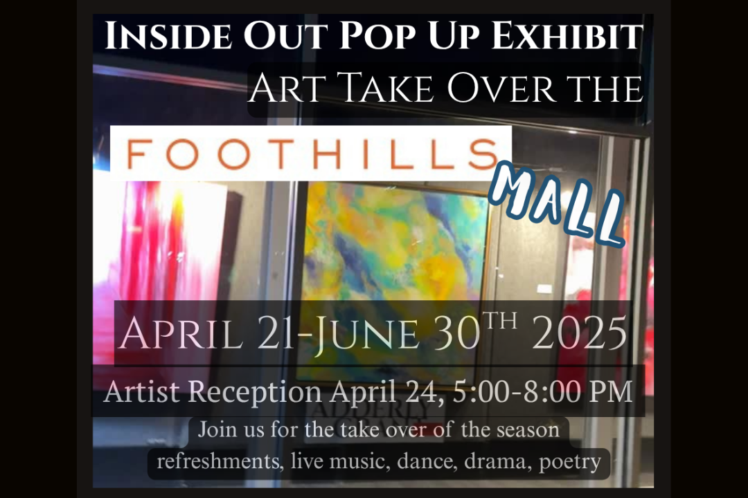 The Inside Out Pop-Up Art Exhibit, curated by Louise Cutler, opens April 21 at Foothills Mall, launching the next phase of the Art Takeover at the Mall initiative. Running through June 30, this dynamic exhibition transforms storefront windows into curated visual experiences, creating meaningful connections between artists and the public in an unexpected setting.